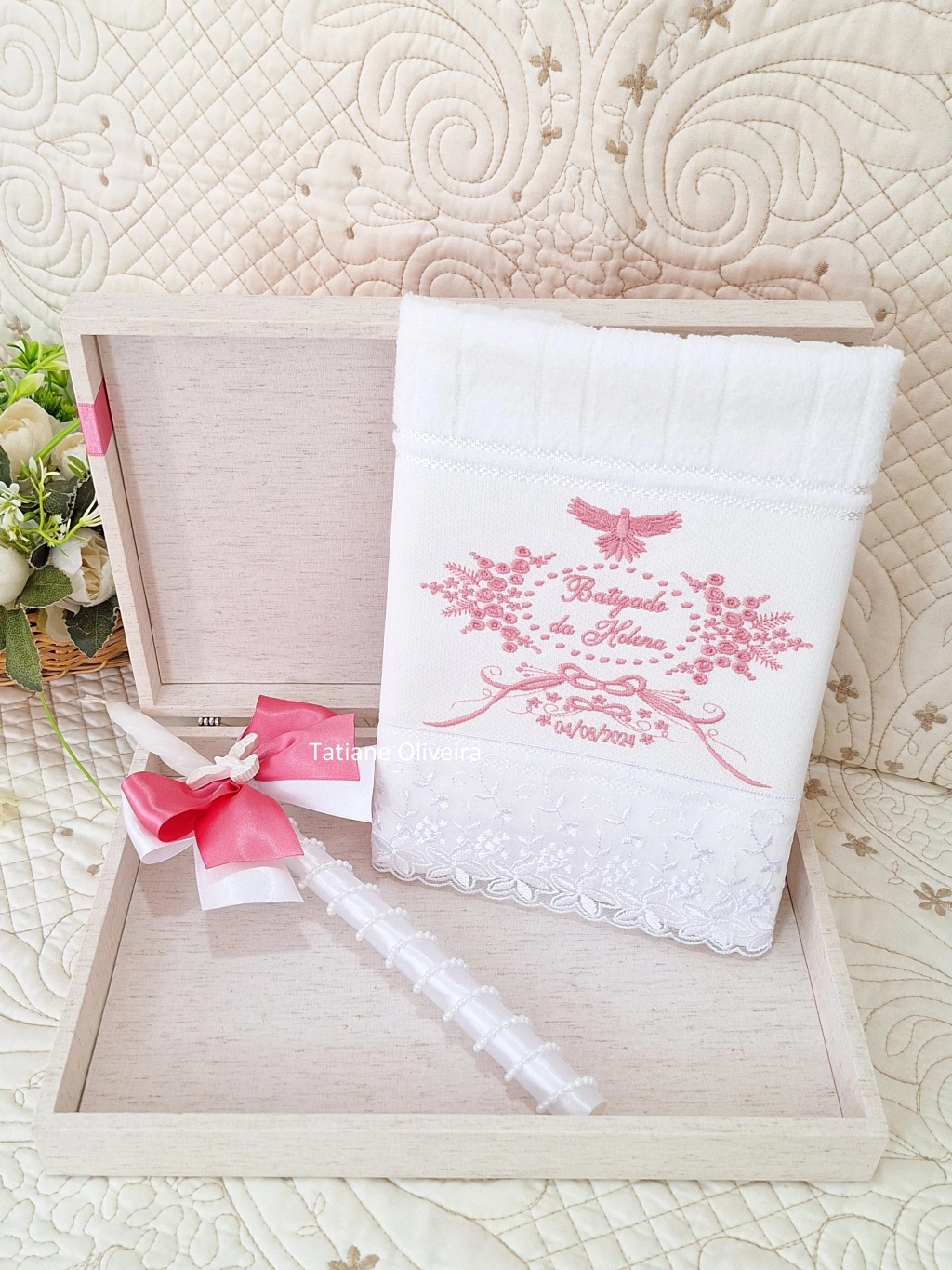 Após o nascimento, o batismo é uma das datas mais importantes em nossas vidas. E para eternizar esse momento, desenvolvi esse kit todo delicado e cheio de significado.