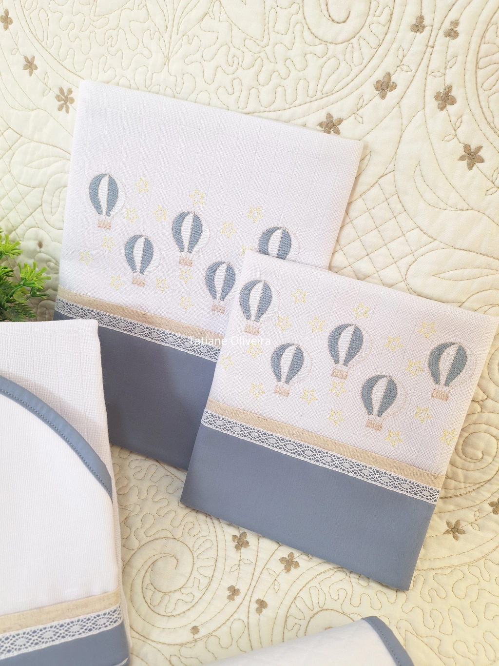 Acabamento em viés de tecido. Capuz forrado, bordado sem contato com a cabecinha do bebê.